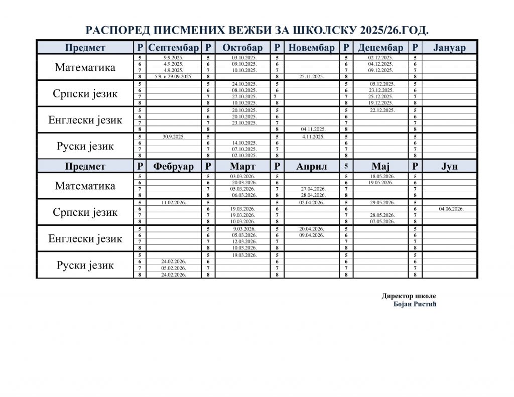 Распоред Сл Активности, ЧОС и Доп. наставе